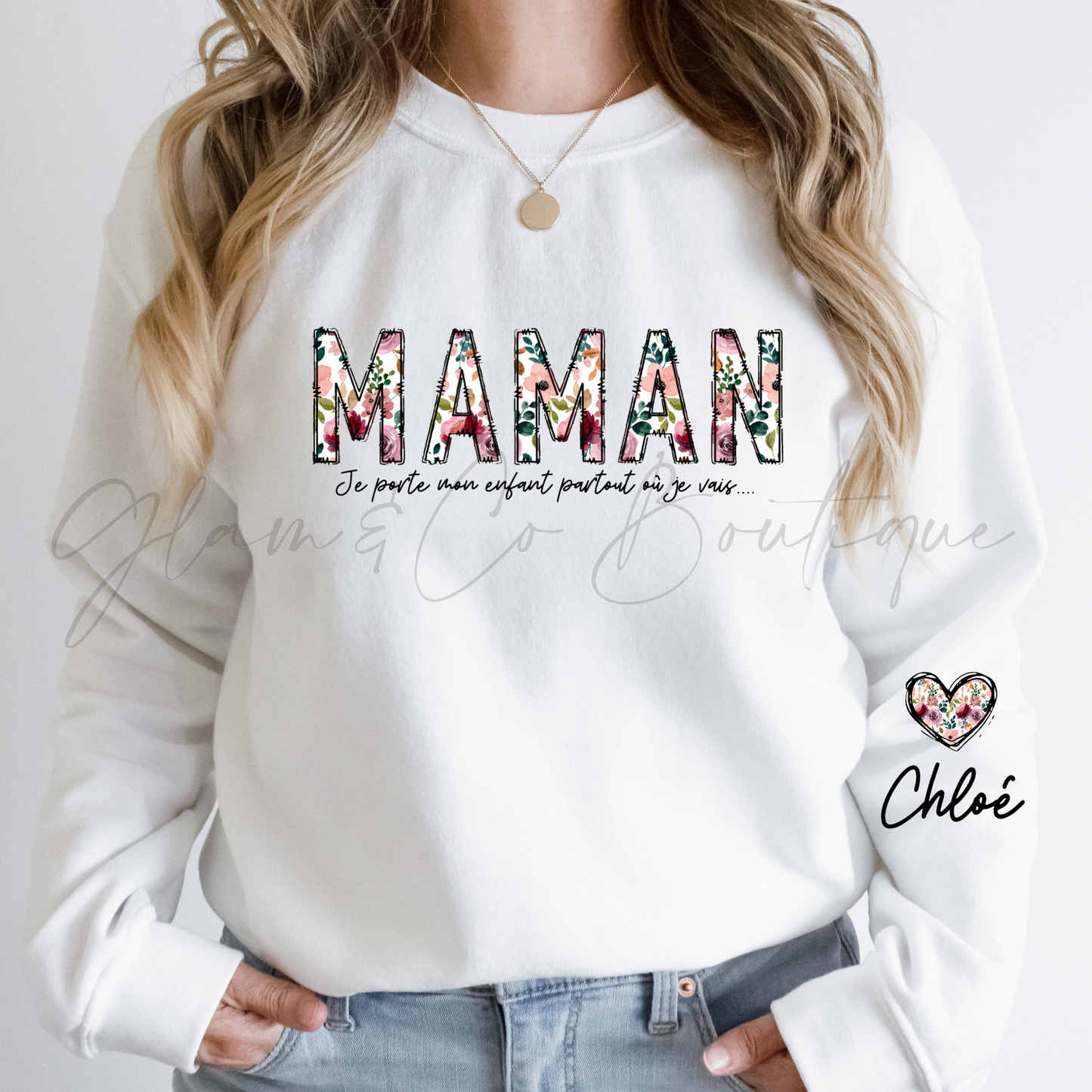 Sweater Crewneck " MAMAN FLORAL"